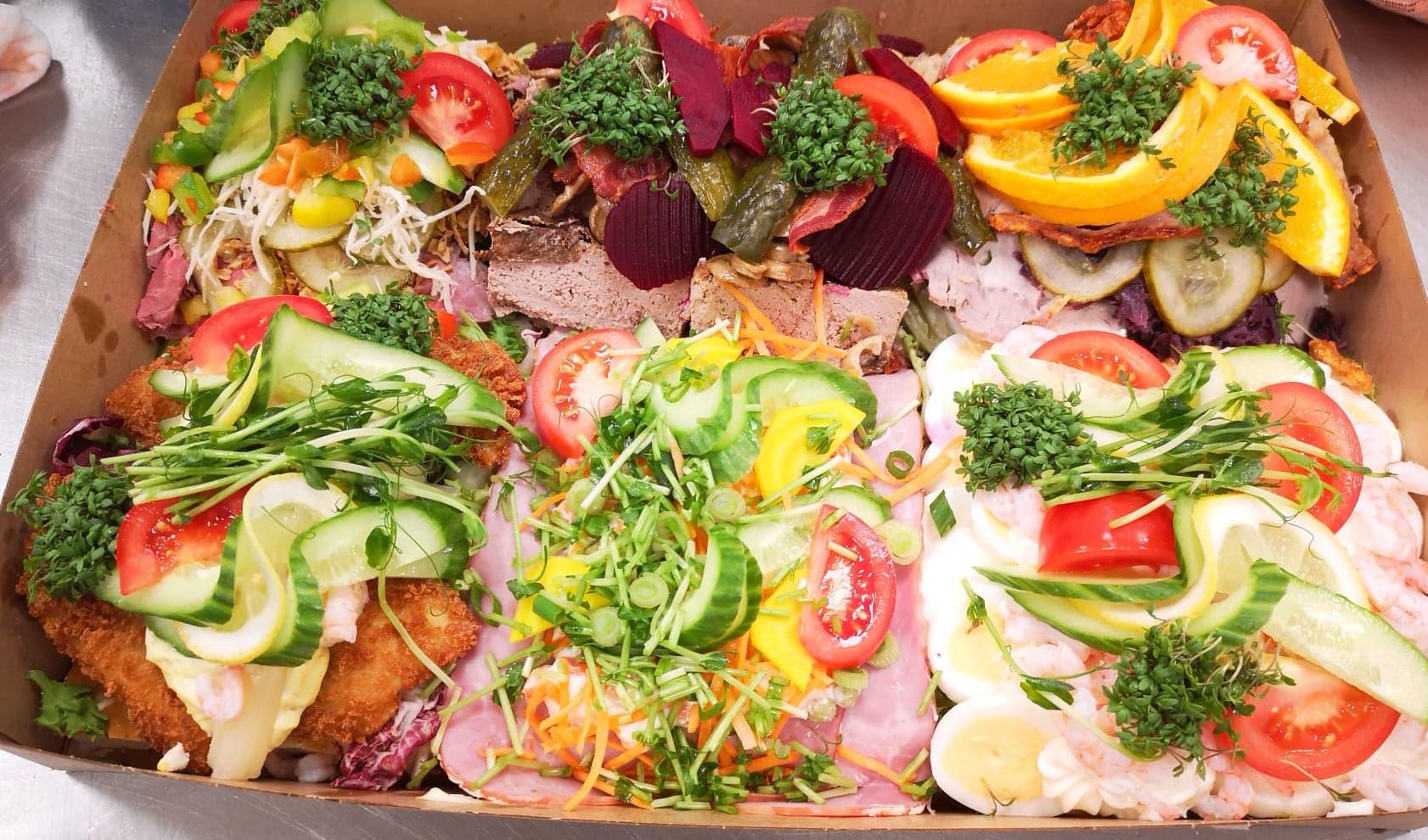 Pålægsfirkant til ca 12-14 personer 599,- mere pålæg på af hver slags & fyld samt godt med grønt og tilbehør på.