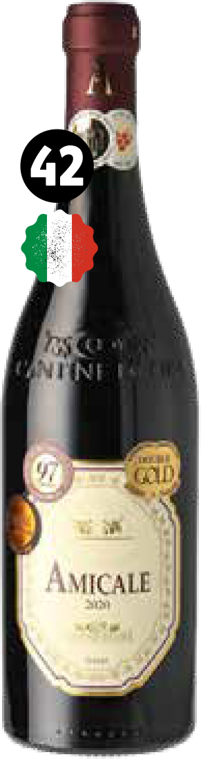 Italien. Amicale passer rigtig godt til flæskesteg, and, grillmad og andre klassiske hverdagsretter. Vinen kan pga. den dejlige sødme også med fordel nydes med modne oste. Servér ved 16-18°C. Vejl. pris 134,95